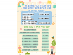 【記者林家慶報導】 自閉症與嚴重情緒行為障礙是當今社會中日益受到關注的心理健康狀況,早期診斷對個案及其家庭極為重要,衛生福利部推動「嚴重情緒行為身心障礙者精神醫療就醫障礙改善計畫」,透過專業訓練的醫療團隊支持、並從住院、門診、社區延續性的持續服務,若民眾有相關需求,可透過線上轉介,醫院個管師將會主動聯繫及早介入協助。 ...... [閱讀更多]