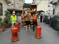 【News586/總社長孫崇文報導】農曆新年到來,大街小巷、家家戶戶除舊布新,台中市政府環保局表示,為迎接新年新氣象,北區、東南、霧峰及潭子區清潔隊發揮巧思、資源回收再利用,將回收的寶特瓶、紙箱、輪胎、選舉旗幟等,於垃圾車、資收車掛起環保創意鞭炮、春聯等,清潔隊員更巧扮財神爺、兔寶寶,民眾倒垃圾之餘驚呼「倒垃圾也好有年味」、「清潔隊太有創意了!」 環保局表示,北區清潔隊回收...... [閱讀更多]