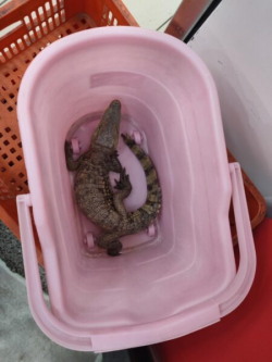 【News586/記者張淑慧報導】高雄市政府農業局於1月14日晚間8:40左右接獲楠梓區民眾通報,某店家客人用餐到一半時,突然從旁邊水溝竄出一隻50~60公分的鱷魚,後來民眾將牠捕捉到籃子內,農業局委外廠商赴現場將鱷魚帶走。 經查這是眼鏡鱷,其品種,將由農業局委託屏科大專家給予鑑定。 鱷魚目前台灣尚未聽聞野外出現族群,推測應該是特殊寵物遺失,農業局呼籲遺失鱷魚的民眾速聯繫農業...... [閱讀更多]