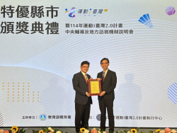 (記者林明佑/台中報導)台中市在全民運動推展方面屢創佳績,連續9年榮獲教育部體育署「運動i台灣2.0計畫」績效評比「特優獎」,為全國之最!今(5)日由台中市運動局長游志祥代表台中市長盧秀燕出席「113年特優縣市頒獎典禮」受獎,游局長感謝中央肯定與支持,這項殊榮不僅展現台中市在運動推廣上的卓越成果,也成功提升市民的運動風氣。 游局長表示,台中市連年獲獎不僅代表市府的努力獲...... [閱讀更多]