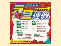 元旦假期交通疏運措施 中市府籲搭大眾運輸工具享優惠 【News586/總社長孫崇文報導】 元旦連續假期將到來,台中市政府交通局表示,因應返鄉與出遊車潮,交通部高速公路局將視國道中部路段及地方車流,彈性開放國道1號(豐原至台中路段)路肩,避免出現壅塞,也呼籲民眾多搭乘大眾運輸工具代步,12月30日至明年1月2日疏運期間,搭乘台、高鐵及國道客運於10小時內轉乘市區公車享有基本里程免...... [閱讀更多]