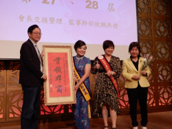 市長張善政致贈予榮任第28屆會長的呂秀蓮「首領群商」紙匾,這是上任後首場市政公開行程。 【News586/記者彭慧婉報導】桃園市工商婦女協會第27、28屆會長交接典禮,今(12/27)日上午在中壢區古華花園飯店舉行,桃園市長張善政受邀出席,受到現場賓客熱烈歡迎。立法委員張育美、經發局長張誠、市府新聞處長羅楚東、中壢區長李日強、桃園市工商婦女協會第28屆會長呂秀蓮、第27屆會長吳珠玫...... [閱讀更多]