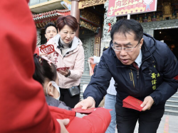 【 News586/ 記者張中俊 報導】今(28)天是除夕團圓日,臺南市長黃偉哲特別前往各區大廟參香,為臺南祈福並發送小紅包向民眾拜早年,上午走訪七股龍山宮、北門南鯤鯓代天府,在立委林俊憲、陳亭妃、賴惠員及議員蔡蘇秋金、謝舒凡陪同下,向神明上香祈福,並發放蛇年紅包向市民朋友拜年。參拜民眾聽聞市長來上香、發紅包,也齊聚廟埕排隊,開心領取市長的蛇年紅包,分享過年喜氣。 市長黃偉哲表示,...... [閱讀更多]