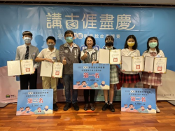 客語情境式講古國中組前三名得獎者合照。 【News586/記者彭慧婉報導】「2022桃園客語說故事競賽」於22、23日在國立中央大學登場,分為「國小低年級組」、「國小中年級組」、「國小高年級組」、「國中組」、「高中試辦組」、「幼兒親子組」、「客語情境式講古國小組」、「客語情境式講古國中組」及「長青組」等9個組別,共吸引77校264名孩童及長者100人報名參賽,展現平時客語學習成果。...... [閱讀更多]
