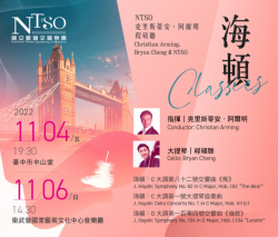 【 News586/記者黃秀卿報導】國立臺灣交響樂團(簡稱「國臺交」)即將於2022年11月起推出以海頓(J. Haydn)為主題的2套經典音樂會,由國臺交客席指揮克里斯蒂安.阿爾明(Christian Arming)再次魅力登場,帶來不同時期的海頓作品。2套系列分別邀請大提琴家程碩聰(Bryan Cheng),與國臺交首席音樂家們帶來致敬海頓的曲目,將於2022年1...... [閱讀更多]