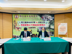〔News586/記者林健昌報導〕嘉義高中為促進與大學端在人才培育、課程與師資的交流合作,引入豐沛的社區資源,於9/19日在嘉義高中旭陵樓三樓會議室舉行策略聯盟合作協議書簽署儀式,由嘉中陳元泰校長及長庚大學醫學系謝明儒主任代表兩校完成締約,兩校基於資源共享、互利互惠的原則,進行師資、場地設備、圖書資源與課程等面向的合作,以期建立雙贏的策略聯盟夥伴關係。 本學期在長庚大學醫學系...... [閱讀更多]