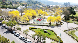 金黃絲帶再現公園街道 台中市黃花風鈴木盛開