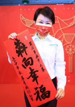 盧秀燕市長祝福台中市民「犇向幸福」,出自國寶級書法大師周良敦墨寶。 【記者葉志雲/台中報導】台中市政府喜迎牛年春節,今年賀聯祝福語「犇向幸福」特別邀請到國寶級書法大師周良敦書寫,陪市民歡喜過年。盧秀燕市長與市府團隊向所有市民朋友拜早年,祝福牛年行大運、平安快樂。因應疫情,今年調整為提前請書法家寫好春聯,裝袋開放民眾即日起至22日領取。 台中市政府1月20日...... [閱讀更多]