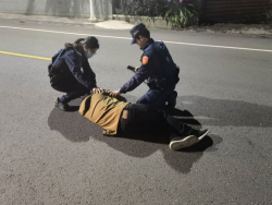 〔記者林博文/嘉義市報導〕嘉義市政府警察局第二分局長竹派出所警員蔡佳蓉及侯景峻日前擔服巡邏勤務時,發現馬路中間倒臥一名男子,並立即下車上前查看,原來是一名酒醉男子不勝酒力路倒。 經了解,該名張姓男子從KTV與朋友歡唱並飲酒後欲獨自步行返家,孰料於返家途中因不勝酒力路倒於馬路中間,男子疑似因酒醉而忘記家中地址,只喃喃地說自己住在嘉義縣中埔鄉,但是無法說出詳細的地址,...... [閱讀更多]