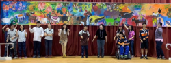 中特繪畫班慢飛天使與繽紛多彩的10碼大畫布作品 【焦點時報/記者葉志雲報導】見過慢飛天使畫出心中秘密花園及夢想世界嗎?台中市萬和宮迎接洋溢著愛的「中特藝世界特殊美能聯展」,展出台中特教學校美術班和塗鴉班老師、31名身障學生及8名校友的作品,這也是他們走出校門的第一次聯展,深具意義。慢飛天使們透過作品引領參觀者認識他們心中的快樂與喜悅,值得大家期待與不吝掌聲鼓勵...... [閱讀更多]