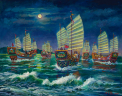 ▲洪元益老師-夜潮 王爺船入港 【記者蔡宗武/台南報導】配合第十七屆「鯤鯓王平安鹽祭」,由財團法人南鯤鯓代天府主辦,財團法人侯永都藝術館協辦,邀請在地蚵寮庄旅北藝術家:洪元益(油畫暨印鈕雕刻)、吳德和(石雕)、王志文(木雕、雕塑),於民國109年11月4日~11月29日期間,假南鯤鯓代天府鯤瀛文化藝術館舉辦「夢迴鯤瀛—旅北遊子三人展」。 南鯤鯓代天府總幹事...... [閱讀更多]
