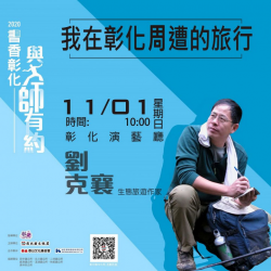 【記者賴建勳/彰化報導】 彰化縣文化局「2020書香彰化-與大師有約」第8場次,將於11月1日(星期日)上午10:00在彰化演藝廳精彩開講,邀請自然生態旅行家劉克襄老師,以「我在彰化周遭的旅行」為題,分享其在彰化一帶旅行時遇見的有趣故事。內容精彩,歡迎大家踴躍前往聆聽。 長期投入自然觀察寫作,親身踏查臺灣古道,挖掘、記錄地方歷史文化的劉克襄,以他...... [閱讀更多]