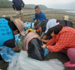 海保救援團隊及熱心民眾協助現場照護瓜頭鯨 【記者蔡宗武/綜合報導】昨(17)日上午十點半,海洋保育署海保救援網(MARN)接獲通報,在新北市下福派出所前海灘發現2隻活體鯨豚擱淺,經過MARN專家初步判斷,均為瓜頭鯨。海巡署第八岸巡隊、MARN救援團隊中華鯨豚協會及新北市動保處處長楊淑方等人到場處理,海保署黃向文署長也親自到場關切擱淺鯨豚狀況,共...... [閱讀更多]