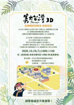 【記者蔡宗武/高雄報導】 2020延續美力台灣十週年,10月(24)日以高雄的資源回饋高雄,從都市的邊際串連偏鄉持續耕耘,在大高雄紮根。美力台灣3D行動電影車從偏鄉回到城市 時間:2020年10月24日(六)10:00~11:00 地點:駁二藝術特區 高雄市鹽埕區大勇路1號(藝術廣場) 誠摯邀請共襄盛舉 美力台灣FB...... [閱讀更多]