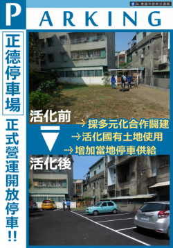 【記者蔡學民/高雄報導】高雄市苓雅區福德二路264巷與建國一路140巷25弄交叉口的國有土地開闢「高雄正德停車場」,並於即日起開放使用,可供停放小型車停車格位14格(含身障格位1格),將有助增加當地停車供給及改善周遭環境。 為增加苓雅區停車供給,交通局採多元化停車場闢建方式與財政部國有財產署南區分署共同合作,由交通局辦理素地委託經營管理並由財政部國有財產署南區分署提供土地...... [閱讀更多]