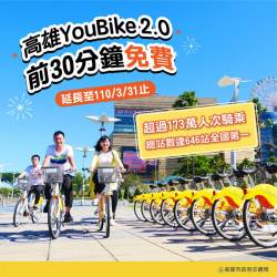 高雄YouBike2.0 646站全國第一,陳其邁宣布前半小時免費延長至110年3月! - 焦點時報社