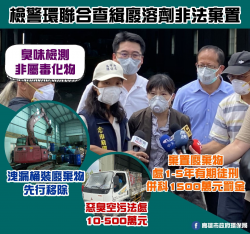 廢溶劑非法棄置 重罰並移送法辦