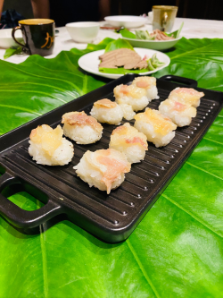 【地方中心/台東報導】「好吃的東西,都需要時間。」,交通部觀光局東部海岸國家風景區管理處(以下簡稱東管處)舉辦東海岸大地藝術節至今已邁入第六年,秉持「藝術要從土地裡長出來」的精神,今年度將持續延伸旅人的感官,首次與長光部落青年合作打造「食物文化體驗-長光伊娜說故事劇場」,要將東海岸的生活藝術帶到味蕾上來。 上菜秀餐點-炙燒siraw(醃豬肉)握壽司 ...... [閱讀更多]