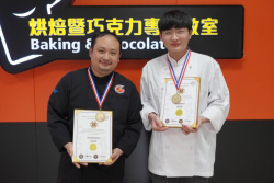 【焦點時報/記者林明佑報導】師徒傳承,國際發光!大葉大學烘焙暨飲料調製學士學位學程挑戰比利時觀光美食節國際大賽,蔡振彰老師以「莓果香提巧克力慕斯」榮獲盤飾甜點金牌,大二生紀東豫以「樂世界」榮獲藝術麵包金牌,抱回雙金。 大葉大學的金牌選手紀東豫畢業於旭光高中,大學才開始接觸烘焙,去年曾在荷蘭國際餐飲挑戰賽獲頒銀牌,這是他第二次參加國際比賽,一舉拿下金牌。烘焙學程二年級的紀...... [閱讀更多]