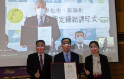 【焦點時報/記者林明佑報導】為歡慶彰化市國定古蹟-扇形車庫興建百週年,彰化市長林世賢與日本大分縣玖珠町(「町」相當於台灣的鄉鎮市)町長宿利政和,2日透過視訊共同簽署「友好交流協定」,玖珠町議會議長大野元秀、日本眾議院議員衛藤徵士郎秘書-衛藤陽平與我國駐日代表謝長廷大使都在線上見證,牽起兩市締盟紅線的台北駐福岡經濟文化辦事處處長陳銘俊,亦在線上協助促成此次的簽約;彰化市民代表會主席...... [閱讀更多]