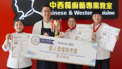 【焦點時報/記者林明佑報導】在地食材搭配素食肉,開發減碳餐,廚藝競賽大放異彩!台灣國際廚藝美食挑戰賽因疫情影響,已經停辦三年,今年再度舉辦,是在台灣唯一一場獲WACS世界廚師協會認證的賽事,大葉大學餐旅管理學系教授彭建治指導大二生陳勁妤、張泓錡、劉容諮參賽,獲得1金1銀1銅的好成績,其中,陳勁妤的西式素食料理不只是勇奪金牌,更獲頒最高分榮譽獎。 大葉大學餐旅系教授彭建治...... [閱讀更多]
