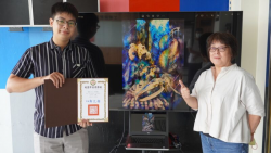 【焦點時報/記者林明佑報導】傳說亞特蘭提斯被大洪水一夕淹沒,從此不見天日,今年6月剛從大葉大學視覺傳達設計學系畢業的蔡秉宏,以此為題材,繪製了長76公分、寬104公分的畫作「湛沒遺址」,10月中旬獲頒桃源美展水彩類入選,特別返校與老師分享獲獎喜悅。 目前在耐特專業美術擔任特助的蔡秉宏表示,大四完成畢業製作後,他期許自己可以持續創作,於是以開設個展為目標,規劃要創作一系列...... [閱讀更多]