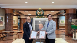 ▲林俊寅捐贈一幅建國科大董事長吳聯星肖像畫,江金山校長特別頒發感謝狀及典藏證書。(圖/記者林明佑攝) 【焦點時報/記者林明佑報導】建國科大美術館今(11)日舉辦「寶島風情~林俊寅創作個展」開幕式,由台灣藝術大學書畫藝術學系畢業的雷雪英以古箏表演揭開序幕,現場吸引美術教師與專業畫家逾百多人與會觀賞大師作品,會中安排前台中市文化局長林輝堂等多位畫會代表致詞,並且對於林俊寅大師的彩筆生輝...... [閱讀更多]
