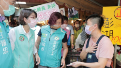 彰化縣長參選人黃秀芳市場拜票接獲陳情 巧遇30年不見老同學加油打氣