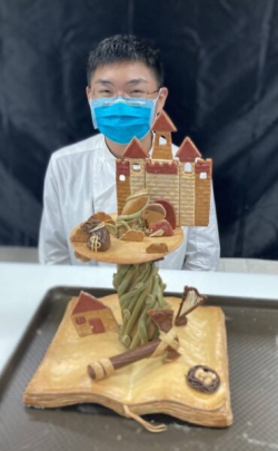 ▲大葉大學烘焙飲調學程紀東豫與銀牌作品「傑克與魔豆」合影。(圖/大葉大學提供) 【焦點時報/記者林明佑報導】大葉大學烘焙暨飲料調製學士學位學程蔡振彰老師指導大一學生參加2022荷蘭國際餐飲挑戰賽,傳回捷報,管世安同學以「同甘共苦」榮獲精緻甜點展示金牌,紀東豫同學以「傑克與魔豆」榮獲藝術麵包展示銀牌。 ▲大葉大學烘焙飲調學程管世安的金牌作品「同甘共苦」。(圖/大葉大學...... [閱讀更多]