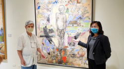 ▲當代藝術家陳朝寶的繪畫世界展出作品「童年」,彰化縣文化局長張雀芬手指畫中人物場景「牽豬哥」。(圖/記者林明佑攝) 【焦點時報/記者林明佑報導】彰化縣文化局自即日起至6月12日在彰化縣立美術館展出「近鄉情怯獻丹青-陳朝寶的繪畫世界」,本次邀請享譽國際的當代藝術家陳朝寶返回故鄉彰化展覽,展出充滿想像與奔放自由的繪畫世界,彰化縣文化局長張雀芬歡迎民眾踴躍前來觀賞,感受陳朝寶畫筆下...... [閱讀更多]