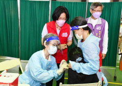 ▲彰化縣長王惠美前往二水國小接種站關心視察,彰化縣內6至11歲學童總共有6萬3,825人,第一期莫德納疫苗調查大約有2成有意願接種。(圖/彰化縣政府提供 ) 【焦點時報/記者林明佑報導】彰化縣政府為加強防疫保護師生的健康,擴大彰化縣校園6-11歲學童Covid-19疫苗覆蓋率,今(4)日上午在二水國小開設接種站,讓幼兒園、國小學童可就近在校園內接種,彰化縣長王惠美等人前往接種...... [閱讀更多]