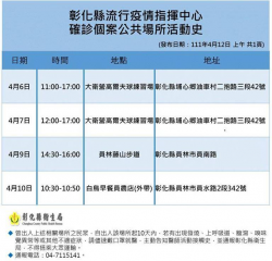▲彰化確診新增2例,員林藤山步道等3處足跡出爐。(圖/彰化縣政府提供,以下皆同) 【焦點時報/記者林明佑報導】中央流行疫情指揮中心今(12)日公布國內新增551例本土個案,彰化縣疫情快訊防疫說明,縣長王惠美表示,彰化縣今天新增2例,其中1例未列案號,另公布確診足跡,分別於4月6日、7日、9日、10日在埔心鄉油車村二抱路三段42號「大衛營高爾夫球練習場」、員林市員南路「員林藤山...... [閱讀更多]