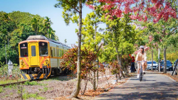 玩美南人Eric共騎卦山三鐵線 參山騎旅賞花旗木尬火車