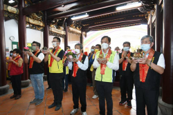 ▲彰化市公所主任秘書許晉嘉(前排左3)代表開化寺管理人林世賢市長主持觀音媽聖誕上供祝壽。(圖/彰化市公所提供) 【焦點時報/記者林明佑報導】位於彰化市中華路134號的開化寺又稱「觀音亭」,今(21)日〈農曆2月19日〉上午舉辦隆重的『觀世音菩薩聖誕祝壽上供大典』活動,由彰化市公所主任秘書許晉嘉代表開化寺管理人林世賢市長擔任主祭,多名縣議員、市民代表及里長與貴賓們陪祭,典禮完成...... [閱讀更多]