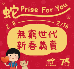 ▲幫助清寒學童好好生活、安心學習,新竹家扶中心結合大潤發湳雅店於2月15日下午1點設攤義賣,所得將全數捐「無窮世代」。(圖/新竹家扶中心提供) 【焦點時報/記者羅蔚舟報導】蛇prise,蛇麼攏賀!家扶基金會串聯全台各中心,自2月8日起辦理共124場「無窮世代新春義賣」,盼在新春開工送暖,助貧童喜迎新學期!新竹家扶中心為幫助清寒學童好好生活、安心學習,結合大潤發湳雅店於2月15日下...... [閱讀更多]