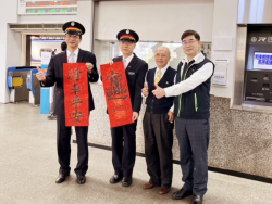 ▲現場揮毫祝福台鐵「行車平安」、「招財進寶」,台電胡忠興處長(右1)和書法家陳玉臺老師(右2)、書法家陳玉臺老師(左2),一起和臺北運務段梁育裕段長(左1)合影。同時,台電胡忠興處長(右1)、書法家陳玉臺老師(右2)和臺鐵新竹站新任站長張光華(左1)、卸任站長呂永權(左2)一起合影。 【焦點時報/記者羅蔚舟報導】歲末年終喜洋洋,家家戶戶迎玉兔,台電新竹區處為和民眾分享年節喜氣,特...... [閱讀更多]