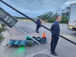 焦點時報 | 竹縣寶山交流道聯絡道口紅綠燈被強風掃斷 邱振瑋:請用路人注意安全