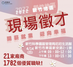 新竹就業中心4/14、4/15連兩日現場徵才 34家科技業釋出3000職缺