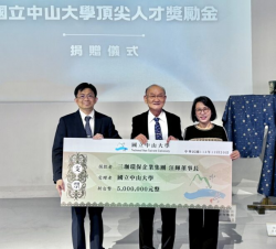 圖/中山大學校友、三珈企業環保企業集團董事長汪輝(中)偕同財務長汪珈琦(右)捐贈500萬支票予中山大學校長李志鵬(左)。 【焦點時報/記者張淑慧 報導】國立中山大學獲得三珈環保企業集團捐贈500萬元,用於設立「頂尖人才獎勵金」。中山大學表示,三珈環保企業集團董事長汪輝,身為高階公共政策碩士學程在職專班(EMPP)校友,不僅一次性捐贈500萬元,更承諾自今年起,連續10年持續捐款,以...... [閱讀更多]