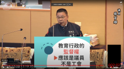 蔡育輝:工會幹部請假,需在授課之餘,教育行政監督權,是議員,不是工會。〈圖/蔡育輝議員提供〉 【焦點時報/記者蔡宗憲報導】 台南教師產業工會會務假引發基層教師大不滿,市議會臨時會今天進行二三讀會。蔡育輝表示,為讓學校預算順利動支,同意復議案修正版本。他強調,教育行政的監督權應該屬於議員,而非教師產業工會。學校預算附加條件要求工會幹部須在任課以外時間請會務假,以免影響學生受教權,...... [閱讀更多]