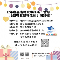 臺南地政事務所有獎徵答,獎品大放送!立即參加,五月底截止! | 焦點時報