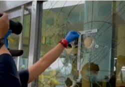 【焦點時報/記者蔡宗武報導】臺南市政府大門遭破壞!今1日下午1時許,永華中心的二頭大門遭人以工地榔頭砸毀市府大門。砸玻璃事件發生時的巨響,嚇壞現場所有人。市府大門玻璃碎裂成蜘蛛網狀,其中一片甚至被整面砸破。 警方於1時30分接獲報案,立即趕往現場。當場逮捕現年43歲,家住玉井的鄭姓嫌犯,並將其帶回華平派出所。鄭嫌供稱,他抗議人民生活困頓,為了人民發聲,才會持工地用榔頭砸毀市府大門...... [閱讀更多]