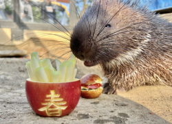 圖/冠豪豬享用特製蘋果漢堡及薯條 【焦點時報/記者蔡宗憲報導】壽山動物園在蛇年春節展現創意,利用新鮮蔬果製作出小黃瓜青蛇、鸚鵡水果盅、龍蝦披薩等美食,為動物準備了一場特製圍爐宴。此外,園方還將鞭炮和麻將設計成覓食玩具,讓狐獴等動物玩樂。為迎接新年,動物園於1月25日至2月2日推出兒童免費入園優惠,並在初一至初五舉辦「蛇來壽山賀新春」活動,遊客只需出示愛河灣冬日遊樂園的遊玩照片,即可...... [閱讀更多]