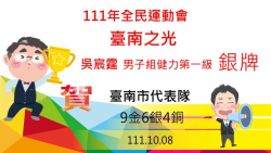 【焦點時報/記者蔡宗武報導】111年全民運動會於今(8)日嘉義縣立田徑場舉行開幕典禮,臺南市各代表隊自今(8)日起至13日止將一連六天在全民運賽事大展身手,臺南市健力代表隊選手吳宸霆在今(8)日賽程就勇奪男子組健力第一級(59公斤級)銀牌,黃偉哲市長也在第一時間恭喜獲獎選手,也勉勵選手持續為臺南爭光。 黃偉哲市長表示,臺南市代表隊截至今(8)日止,在本屆全民運動會已奪得9金6銀4...... [閱讀更多]