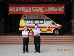 【焦點時報/記者蔡宗武報導】高雄關帝廟今(6)日再捐贈高雄市政府高頂救護車1輛,由消防局第二救災救護大隊大隊長邱榮振代表受贈,並回贈感謝狀,致上深深謝意;與會貴賓有消防局緊急救護科科長黃士純、民政局副局長蔡翹鴻、苓雅區區長鄭美華等一同到場觀禮。 今年台灣疫情升溫之際,端賴配備精良的救護車及第一線消防局救護人員恪盡職責,站在防疫最前端,守護市民生命健康,只有做好萬全準備,消防弟兄才...... [閱讀更多]