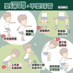 作者:白映俞 醫師腿在人在,腿老人衰,腿部的力量對支撐身體健康有很大的意義,而想透過最手的運動活絡下盤肌群,最經典的動作不外乎深蹲。深蹲的動作會動到髖關節、膝關節、與踝關節,讓身體下壓,並需要臀部肌肉、大腿肌肉、脊椎、腰部肌肉等處偕同,算是非常全方位鍛鍊的經典動作。深蹲這動作怎麼做呢?首先,雙腳打開與肩同寬,趾尖略朝外,雙手可以擺放於胸前、髖部、或肩膀。屁股往後坐就像要坐椅子那樣,重心...... [閱讀更多]
