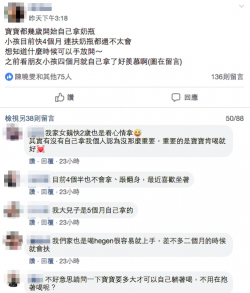 網友媽媽PO文。(圖/翻攝自臉書社團) 寶寶的健康與生活問題永遠是媽媽最操心的,但是沒辦法自己拿奶瓶竟也是新手媽媽擔心的問題之一,到底是寶寶不願意,還是抓握哪裡有問題?日前有位新手媽媽於臉書社團上表示,自己家的寶寶快四個月了,餵奶時連扶著奶瓶都不會,貼文一出,立刻引發媽媽們廣大回響,紛紛表達自身經驗,眾說紛紜。 繼前陣子寶寶喝奶都會剩30...... [閱讀更多]
