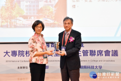 教育部資訊及科技教育司代理司長劉文惠(左)頒獎表揚校園實驗場所安全衛生暨環境保護績優學校,由朝陽科大校長鄭道明(右)代表受獎。(圖/朝陽科技大學) 教育部107年度全國大專校院環境安全衛生主管聯席會議25日在朝陽科技大學舉行,邀集公私立大專校院環安衛生主管約150人參加,會中特別邀請教育部資訊及科技教育司代理司長劉文惠等貴賓到場,表揚校園實驗(...... [閱讀更多]