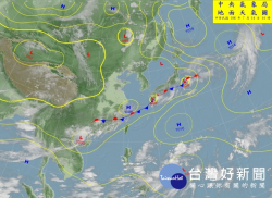 (圖/翻攝自中央氣象局) 位於菲律賓東方海面的熱帶性低氣壓,預計今(16)日將增強為今年第5號颱風「丹娜絲」,氣象局預估最快今晚到明日就會發布海上颱風警報,週四、週五將是最接近台灣的時間點,全台有雨。 氣象局指出,位於菲律賓東方海面的熱帶性低氣壓今日凌晨2時在鵝鑾鼻東南東方約950公里的海面上,持續朝西北西方向行進,週三進入巴士海峽後,太...... [閱讀更多]