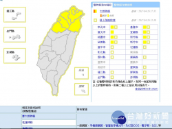 鋒面及東北季風來襲 北台灣大雨警戒(圖/中央氣象局) 好天氣結束,中央氣象局在26日傍晚發布大雨特報,北台灣8縣市都在警戒範圍,民眾要嚴防局部大雨來襲。 中央氣象局今日下午5點35分,針對新北市、基隆市、台北市、宜蘭縣、桃園市、新竹縣、新竹市、苗栗縣等8個地區則發布大雨特報,中央氣象局表示,北部及東北部地區有局部大雨發生的機率,中部山區亦有局部較...... [閱讀更多]